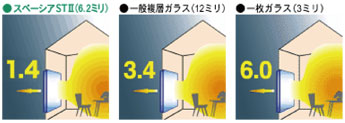 スペーシアSTⅡの断熱性能は、一枚ガラスの約4倍、一般複層ガラス